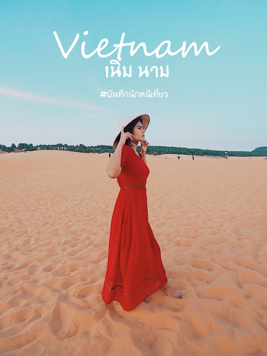 หลังจากเก็บรูปเสร็จแล้ว Mr.คิม พาเราไปจุดที่สามต่อ จากหมู่บ้านชาวประมงไปทะเลทรายขาว ใช้เวลาค่อนข้างนานค่ะ แต่วิวข้างทางสวยมากค่ะ ระหว่างทาง เราจะผ่านทะเลทรายแดง ซึ่ง Mr.คิม บอกเราว่าจะพามาดูพระอาทิตย์ตกที่ทะเลทรายแดง เป็นโปรแกรมสุดท้ายของวันนี้ เรานั่งชมวิวไปเรื่อยๆ จน Mr.คิม เลี้ยวรถเข้ามาจอดตรงทางเข้าเนินทรายขาว