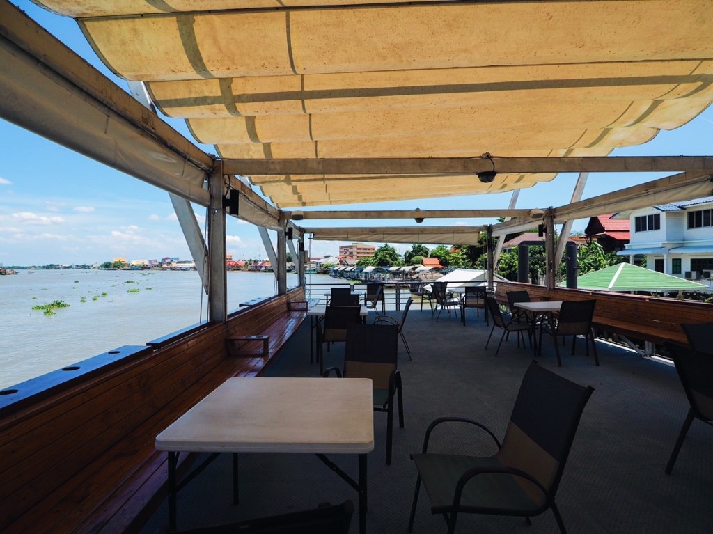 On The River Cafe คาเฟ่ขนาดใหญ่บรรยากาศสุดชิวริมแม่น้ำเจ้าพระยา ตัวคาเฟ่แห่งนี้เป็นแพเหล็กขนาดใหญ่ที่จอดอยู่ริมแม่น้ำเจ้าพระยา ภายในร้านมีทั้ง โซน indoor และ outdoor แนะนำให้มาช่วงเย็นๆเพราะแดดจะไม่แรงจนเกินไป แต่ถ้าใครมาช่วงเที่ยงก็จะได้สีฟ้าสวยๆที่ทำให้การจิบกาแฟ พร้อมชมแม่น้ำเจ้าพระยาไปด้วย สวยกว่าครั้งไหนๆ