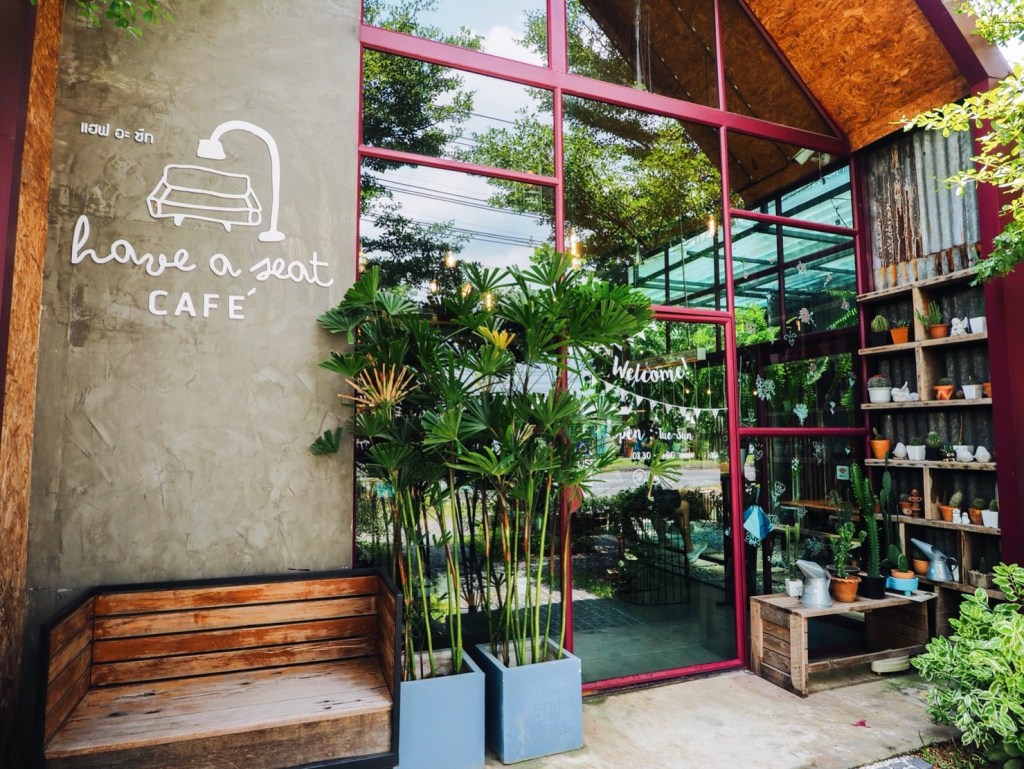 Have a seat design and cafe คาเฟ่ขนาดกลางย่านปทุมธานี ที่ให้ความรู้สึกเหมือนการได้เข้าไปบ้านเล็กในบ้านใหญ่ ได้ตั้งแต่ก้าวแรกที่สัมผัสคาเฟ่แห่งนี้ คาเฟ่แห่งนี้ตกแต่งด้วยสไตล์อินดัสเทรียลลอฟท์ ด้วยการตกแต่งด้วยกระจกเป็นหลัก บวกกับความร่มรื่นของนานาพันธ์ุไม้ทำให้คาเฟ่แห่งนี้ น่านั่งสุดๆๆเลยค่ะ ใครชอบ คาเฟ่ที่ร่มรื่นต้องหลงรักที่นี่แน่นอน ภายในร้านมีทั้ง โซน indoor และ outdoor มีโต๊ะให้เลือกนั่งหลายสไตล์เลยค่ะ ใครชอบแบบไหน สามารถเลือกได้เลย