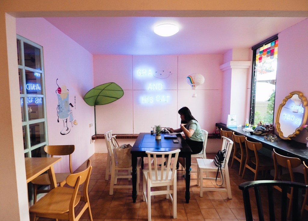 Grandpa Cafe คาเฟ่ขนาดเล็ก ย่านมหาวิทยาลัยรังสิต คาเฟ่ที่ถ้าเราตัดสินแค่หน้าตา คงไม่รู้ว่าคาเฟ่แห่งนี้ซ่อนของอร่อยไว้มากมาย ภายในร้านจะมีทั้งโซน Indoor ที่ตกแต่งแบบน่ารักและมีเจ้าเหมี๊ยวน่ารักคอยต้อนรับเราด้วย และ Outdoor ที่ให้บรรยากาศแบบสวน แนะนำให้มาตอนเย็นๆ บรรยากาศดี นั่งสบาย เหมาะแก่การชวนเพื่อนสาวมาทานขนมพร้อมเม้าท์มาอัพเดทชีวิตกัน