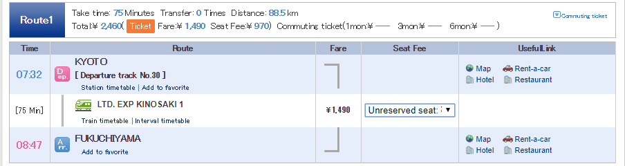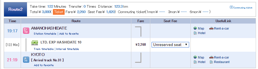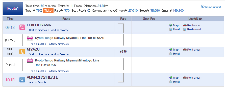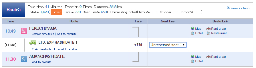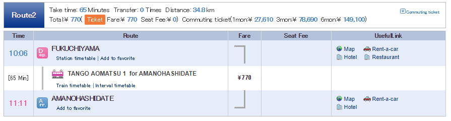 • ต่อรถครั้งที่ 3 : เริ่มต้นทางที่ FUKUCHIYAMA ปลายที่ AMANOHASHIDATE
