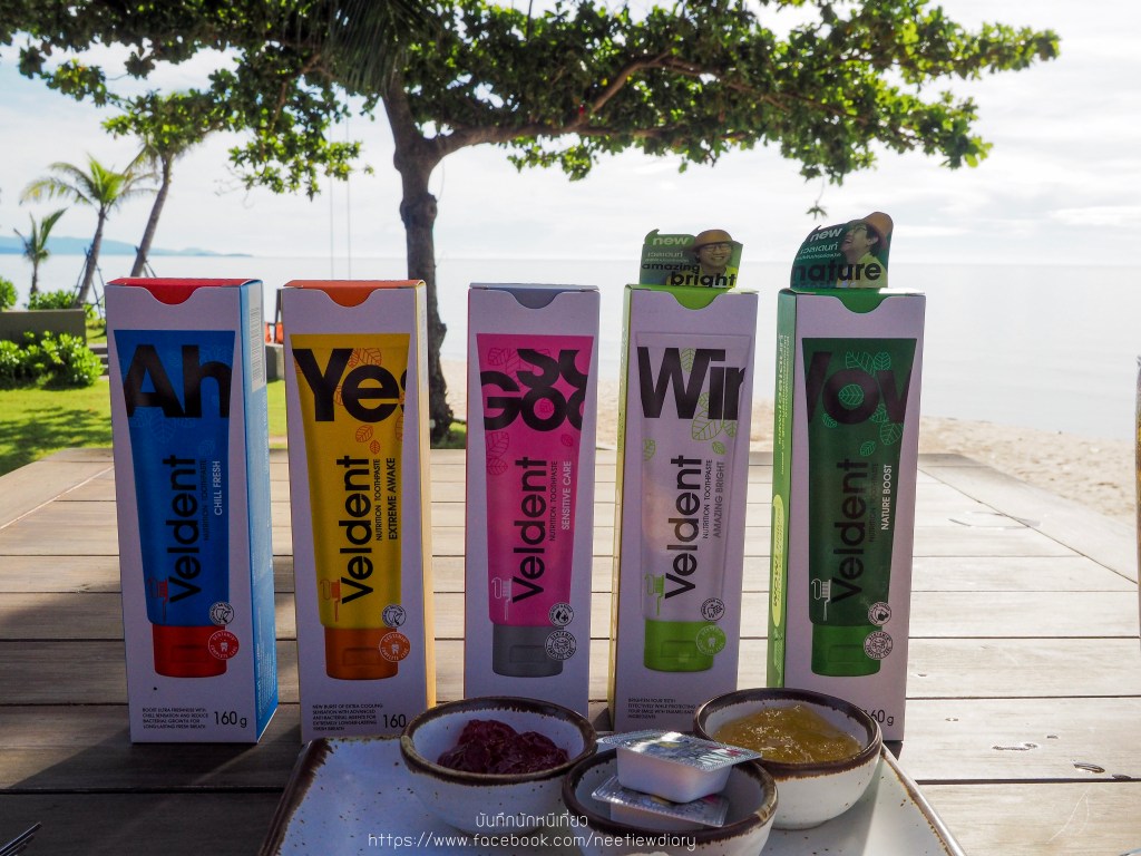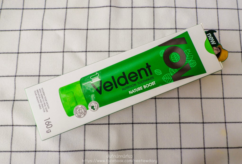 สำหรับใครอยากลองยาสีฟันสีสันสดใส แถมยังเต็มไปด้วยวิตามินมากถึง 7 คุณค่า เราแนะนำ Veldent เลยค่ะ ราคาอยู่ที่ 100 g. ราคา 185 บาท ส่วนหลอดใหญ่แบบเรา 160 g. ราคา 250 บาท