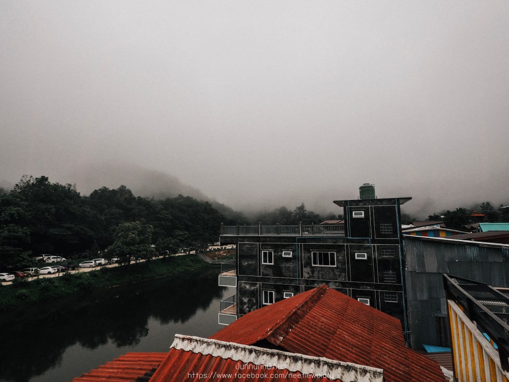 วิวจากหน้าต่างห้องของเรา ก็จะเห็นหมอกลอยอยู่ไกลๆ