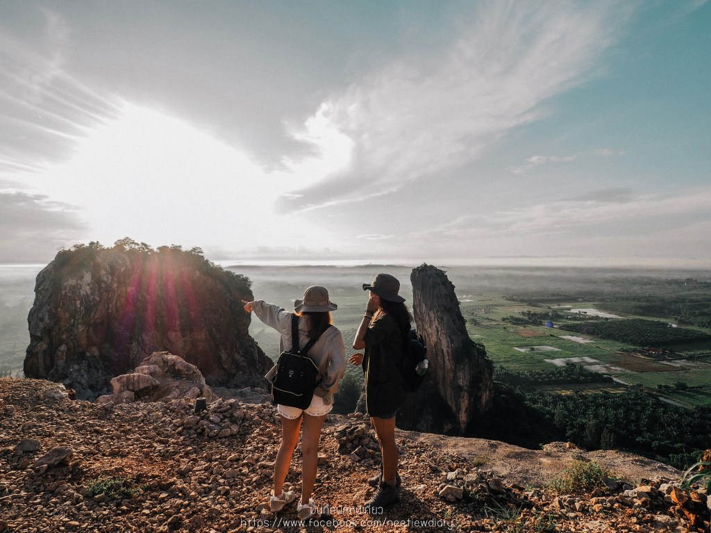 เราใช้เวลาถ่ายรูปอยู่บนเขานานพอสมควร นานพอให้เราได้มองวิวที่กว้างสุดลูกหูลูกตาของจังหวัดสงขลาและจังหวัดพัทลุง วิวตรงหน้าเราเป็นอันซีนที่เราอยากแนะนำให้คุณได้ลองไปสักครั้ง แล้วคุณจะรู้ว่าภูเขาสงขลาสวยไม่แพ้ที่ไหนเลย