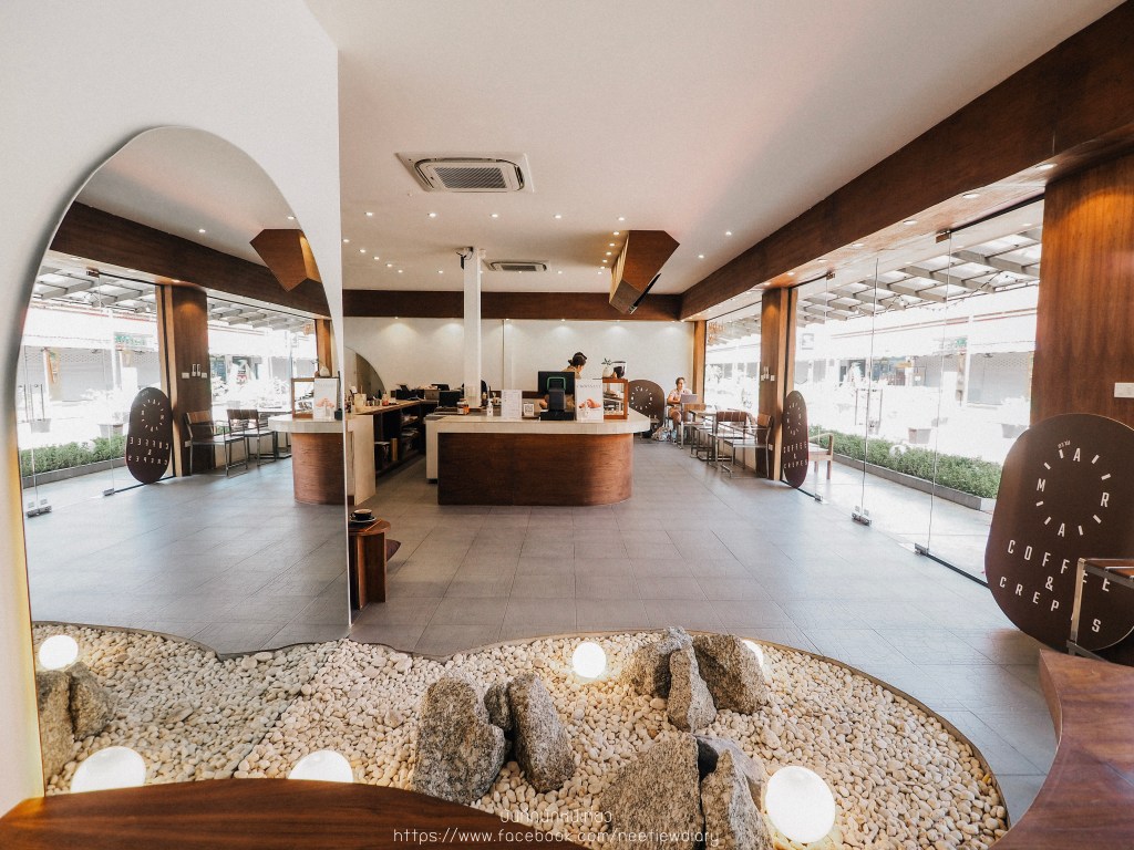 เราชอบตรงเคาน์เตอร์บาร์ที่ตั้งอยู่กลางร้าน ทำให้เราสามารถมองบาริสต้าชงกาแฟ หรือทำเครปได้เพลินๆเลยนะ