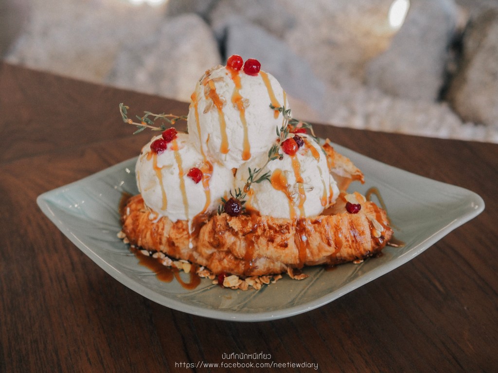 - ครัวซองที่มาพร้อมไอศกรีม เอาจริงเราจำชื่อเมนูนี้ไม่ได้ แต่ทางร้านบอกว่าเป็นเมนูใหม่ที่กำลังจะเปิดตัวเร็วๆนี้ รสชาติอร่อยมากกกก ครัวซองกรอบนอกนุ่มในที่ทานคู่กับไอศกรีม คือดีงามมม