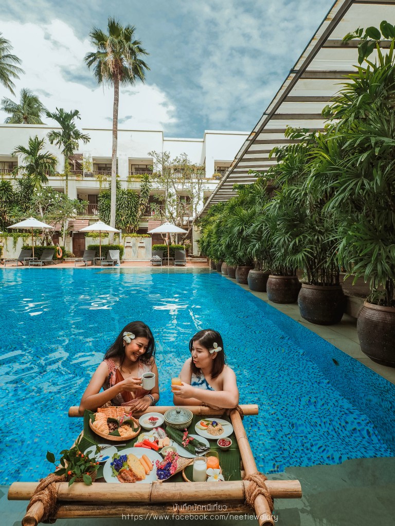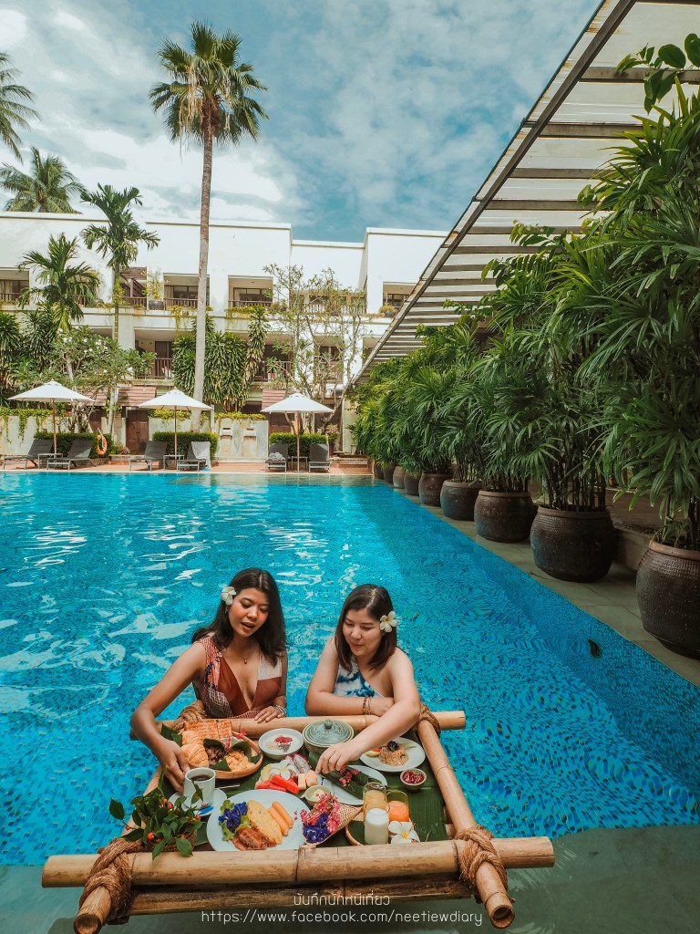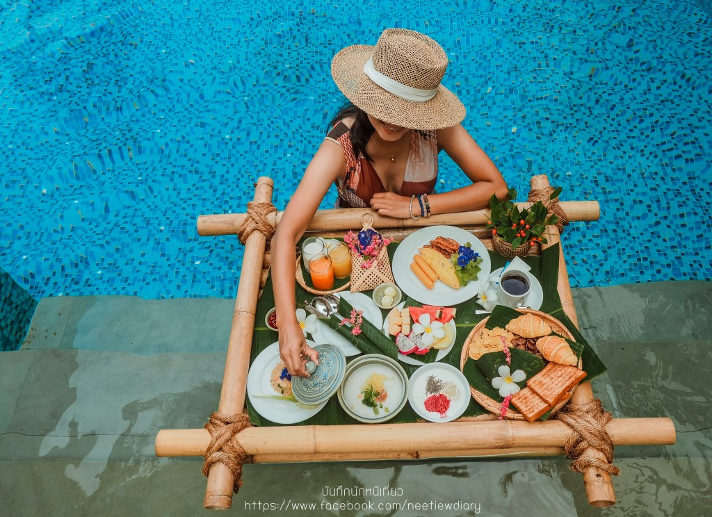 แต่หากใครอยากเพิ่มความเกร๋ เพิ่มรูปสวยๆในไอจี ก็สามารถสั่งเป็น Floating Breakfast ได้นะ เราขอยกถาดอาหารเช้ามาทานที่อีกหนึ่งสระว่ายน้ำส่วนกลางของโรงแรม เพราะว่าแสงตอนเช้าที่สระแห่งนี้สวย ด้วยตัวสระให้อารมณ์เหมือนโอเอซิส แสงดีมากกกก