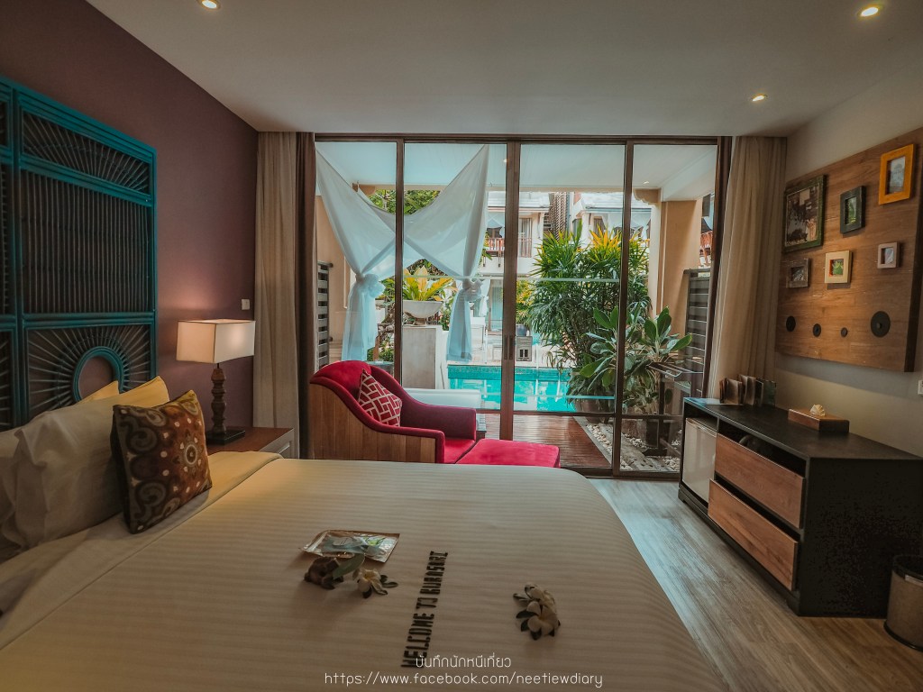 เป็นห้องที่เราพัก ตัวห้องจะอยู่ตึกเดียวกับ Lobby ตัวห้องมีพื้นที่ใช้สอยขนาด 40 ตร.ม. ภายในห้องน้ำมี bathtub ในห้องมีสิ่งอำนวยความสะดวกครบครันเหมือนเดิม ส่วนห้องนอนจะต่อกับสระว่ายน้ำส่วนกลาง