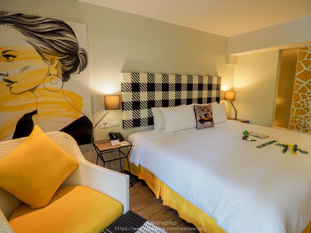 room type เริ่มต้นที่มีพื้นที่ใช้สอยขนาด 28 ตร.ม. เป็นห้องที่ใช้โทนสีสว่าง ขาว-เหลือง สบายตามากๆ ภายในมีสิ่งอำนวยความสะดวกเแบบครบครัน