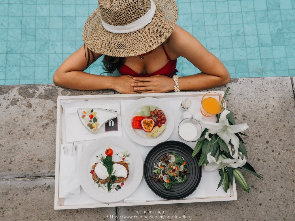 ส่วนเพื่อนเรา ขอใช้สิทธิ์อาหารเช้าที่ริมสระ สั่งเซ็ต Healthy มาทาน