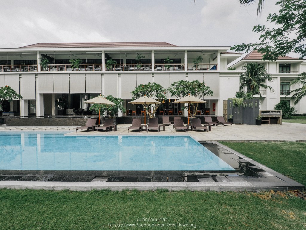 เข้ามาปุ้บเราจะได้เห็นสระว่ายน้ำ ซึ่งเราถือว่าสระว่ายน้ำของที่นี่ถือเป็นจุดขายเลยนะ มีความชิล หันออกไปมองสีเขียวๆ น้ำสีฟ้าๆ แค่นี้ก็สบายใจขึ้นเยอะแล้ววว