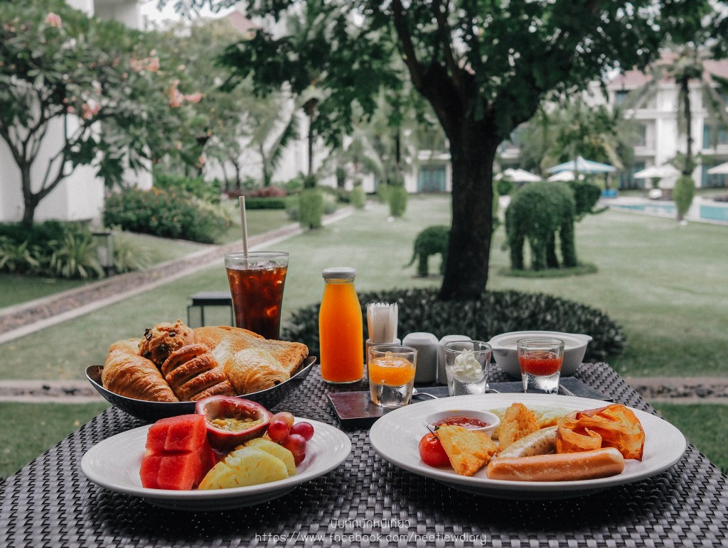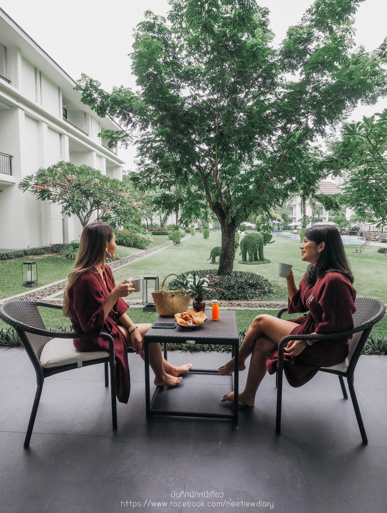 เราใช้สิทธิ์ของเราทานที่ริมระเบียงห้องแบบชิลๆ ตัวอาหารเช้าเราสามารถเลือกได้นะคะ ว่าจะรับเซ็ตไหน กี่โมง และทานที่ไหน