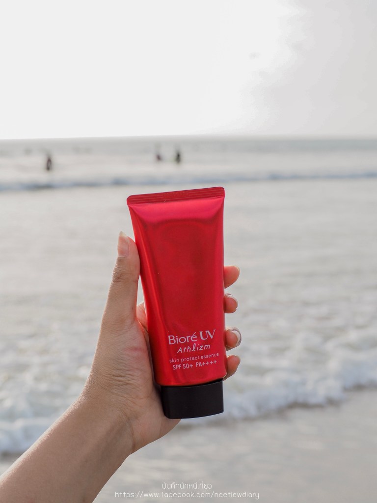Biore สีแดงมีสูตรเนื้อ Essence ด้วยนะ การเล่นเซิร์ฟของเราก็จะสนุกสุดเหวี่ยงได้ ไม่ต้องกลัวกันแดดหลุด