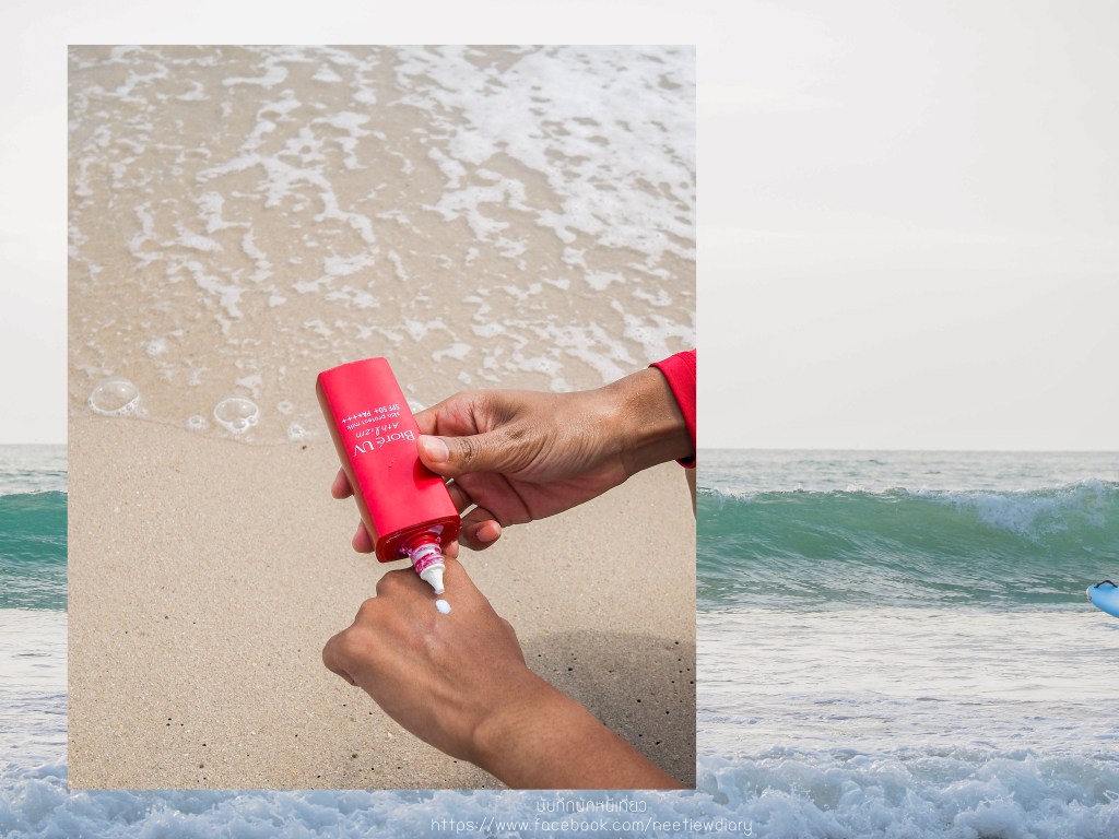 ก่อนจะโดนคลื่นซัดตกจากบอร์ดขอเพิ่มความมั่นใจให้ผิวด้วยการทากันแดดก่อนลงทะเลกันอีกครั้ง ใครที่จะทำกิจกรรมออกแดด ออกทะเลแบบเรา การทากันแดดสำคัญน้า เพราะไม่ว่าจะเป็นแดด หรือ น้ำเค็ม ทำร้ายผิวเราได้ง่ายมาก