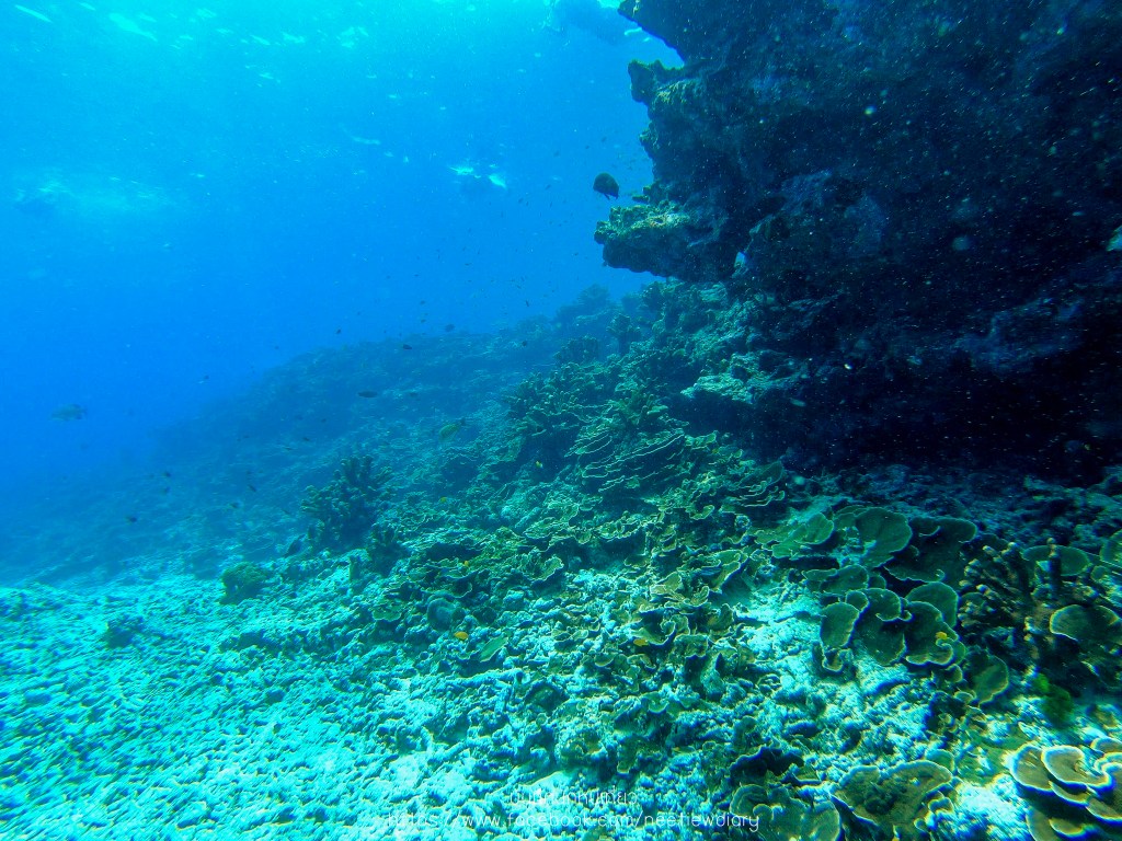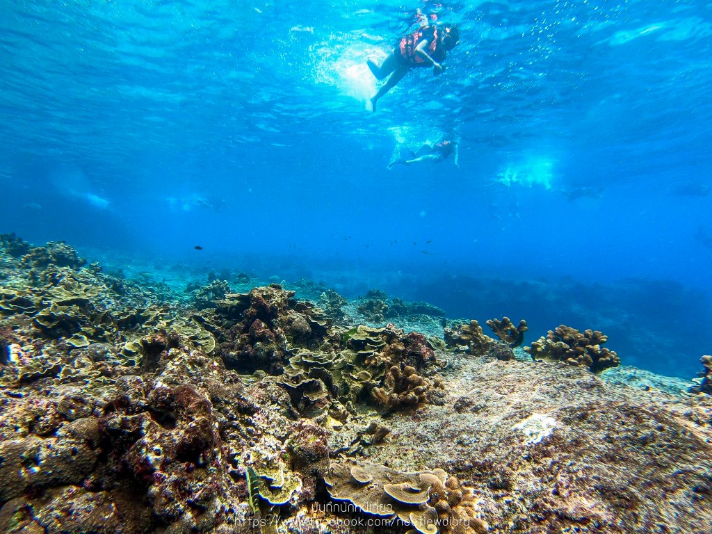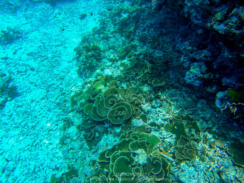 บริเวณนี้สวยดีค่ะ มีปะการังสีน้ำเงินเยอะเลย