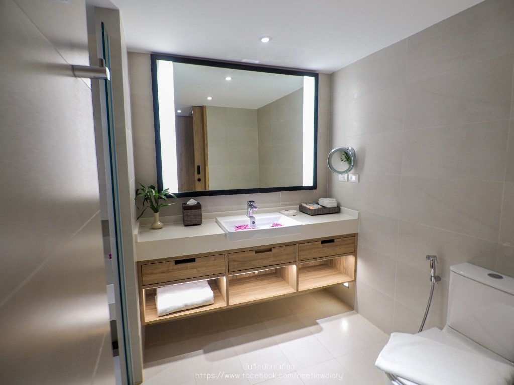 มาดูส่วนของห้องน้ำกันต่อค่ะ ขนาดพื้นที่ใช้สอยห้องของน้ำถือว่ากว้างพอสมควรเลยนะ เราชอบสุดคือกระจกเงาบานใหญ่มากกก