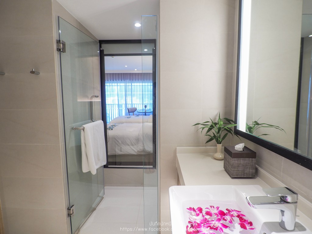 อีกอย่างเราชอบมุมที่มองไปยังห้องน้ำ ใครที่มากับแฟนสามารถอาบน้ำไปมองวิวระเบียงไปด้วยได้เลย