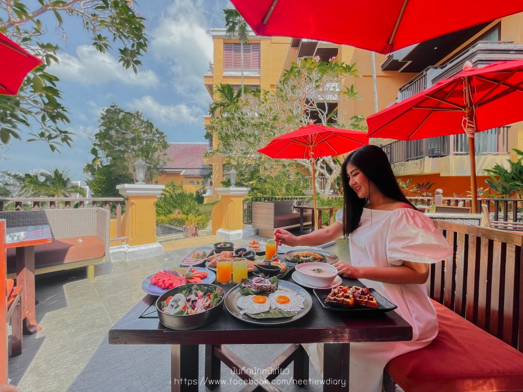 อาหารเช้าของที่นี่จะทานกันที่ห้องอาหารโลตัส โดยห้องอาหารแห่งนี้มีทั้งที่นั่งภายในอาคารและที่นั่งริมระเบียง ซึ่งมองเห็นวิวสวนไม้เมืองร้อนของรีสอร์ท และให้บริการอาหารเช้าแบบบุพเฟ่ต์ ซึ่งมีเมนูอาหารที่ยอดเยี่ยมและมีเอกลักษณ์ในแบบ a la carte ประสบการณ์ที่แสนประทับใจรอคเราอยู่