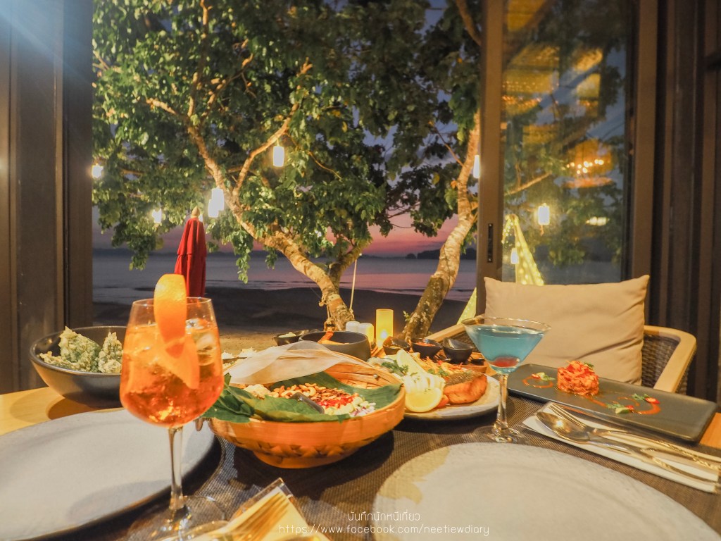 เย็นนี้เราฝากท้องไว้ที่ห้องอาหารของโรงแรม เพราะบรรยากาศริมทะเลที่ตราตรึงทำให้เราไม่อยากออกไปไหนไกลเลยค่ะ