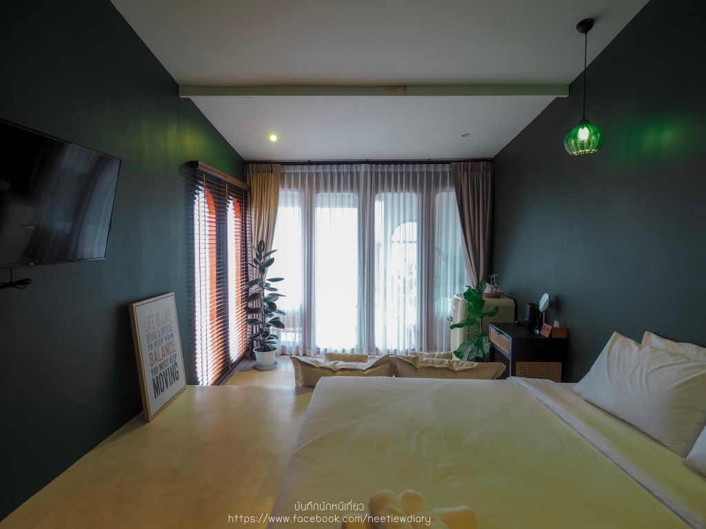 มาดูห้องที่เราพักกันในทริปนี้ค่ะ เราเลือกห้อง Sea View 2 เป็นห้องมุม และอีกเหตุผลที่เลือกเราชอบสีเขียวเข้มของผนังห้องนี้