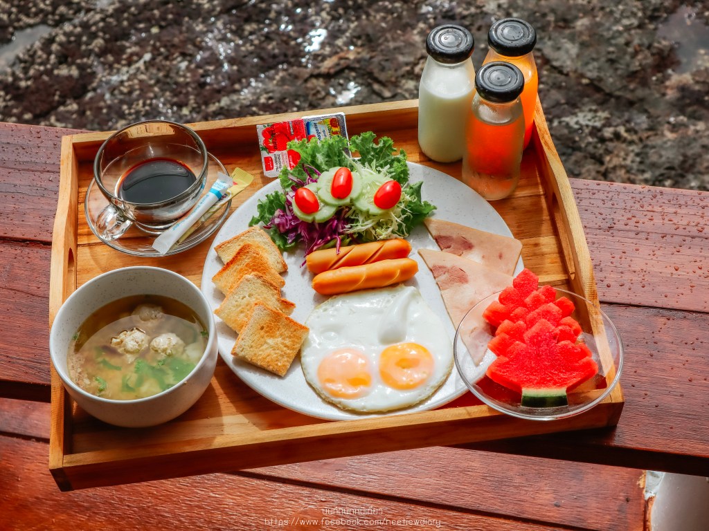 Breakfast ราคาห้องของที่นี่จะรวมอาหารเช้าไว้อยู่แล้ว เราสามารถนัดเวลาที่จะรับอาหารเช้าได้ตั้งแต่ตอนเช็คอิน เมื่อถึงเวลานัดคุรป้าที่ดูแลจะมาเคาะที่ห้อง เพราะกับอาหารเช้าที่หน้าตาน่าทาน และกลิ่นหอมๆของข้าวต้ม
