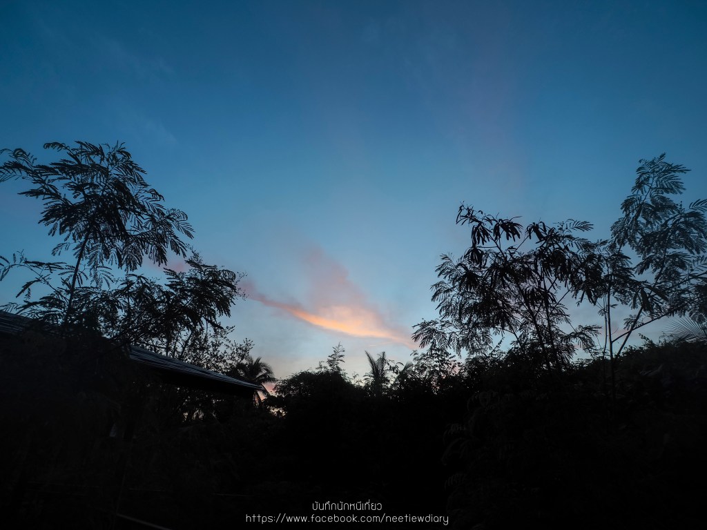 ใครมาพักที่นี่ เราแนะนำว่าไม่ควรมาเย็นเกินไปเพราะจะพลาดแสงสวยๆแบบเรา แต่อย่างน้อยเราก็ยังได้เจอช่วงเวลาที่แสงสวยที่สุดของบ้านมะขาม และคืนนี้เราก็หลับไปพร้อมกับบรรยากาศสวยๆ ของบ้านมะขามและอยากจะบอกว่าเป็นคืนที่เราหลับสนิทมากในรอบ 1 เดือนเลยล่ะ