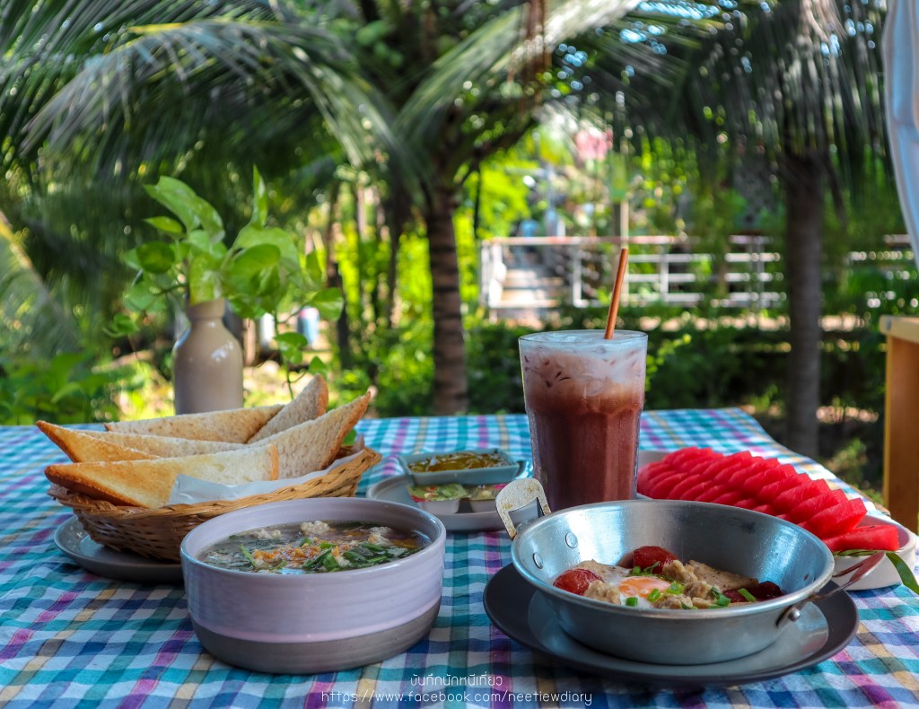 จริงๆบ้านมะขามก็มีส่วนของคาเฟ่ด้วยนะ ก็คือบริเวณที่เรามานั่งทานขาวกันนี่ล่ะค่ะ โดยตัวคาเฟ่จะเปิดตอน 10 โมงนะ หากใครมาเที่ยวบางกระเจ้า อยากจะแวะมานั่งชิลๆที่นี่ก็ได้เลยค่ะ