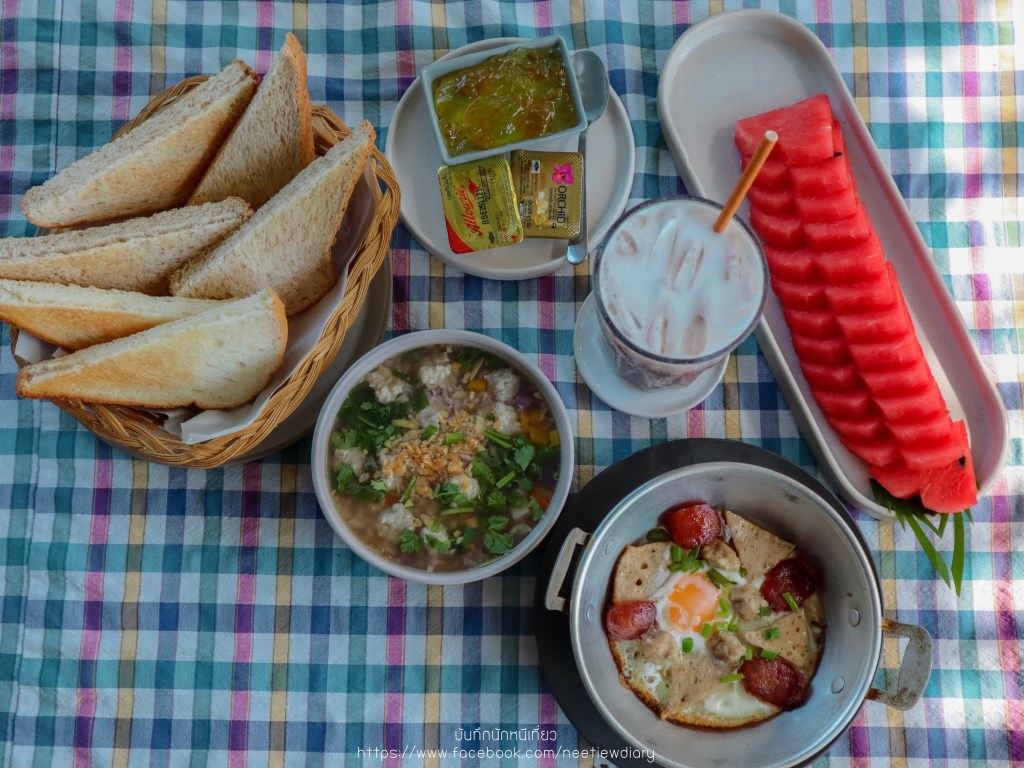 อาหารเช้า ที่บ้านมะขามจะมีอาหารเช้าเป็นเซ็ต โดยเซ็ตนั้นจะประกอบไปด้วย ขนมปัง ไข่กระทะ ข้าวต้ม ผลไม้ และเครื่องดื่มคนละ 1 แก้ว รับรองว่าใครทานหมดคืออิ่มถึงเที่ยงแน่นอน