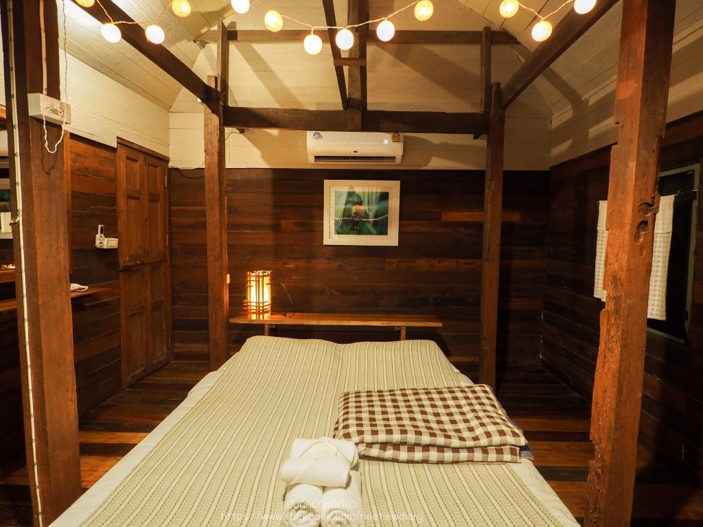 บ้านหลองข้าว คือบ้านพักของเราในทริปนี้ ตัวบ้านหลองข้าวจะเป็นบ้านใต้ถุนสูง ภายในจะเป็นเตียงเดี่ยวขนาดคิงไซส์ มีห้องน้ำในตัว ด้านล่างมีพื้นที่นั่งเล่น และที่ชอบสุดก็น่าจะเป็นวิวจากหน้าต่างที่ทำให้เราสามารถมองเห็นวิวภูเขาที่อยู่ใกล้ๆได้เต็มตา