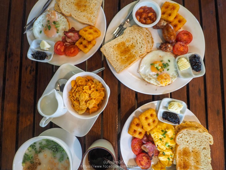 อาหารเช้าของที่นี่จะให้เราสามารถเลือกได้คนละ 1 ชุด จะมีข้าวต้ม หรือชุดอเมริกันเบรกฟาร์ส โดยปริมาณที่ให้มา หากทานหมดก็อิ่มมากทีเดียวเลยค่ะ