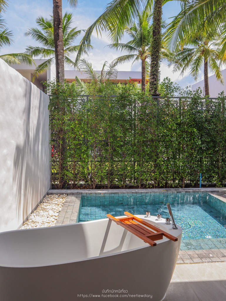และไม่ต้องกลัวว่าจะพลาดโมเม้นไหนไป เพราะห้องนี้ก็มี bathtub ให้เราได้แช่น้ำฟินๆริมสระด้วย