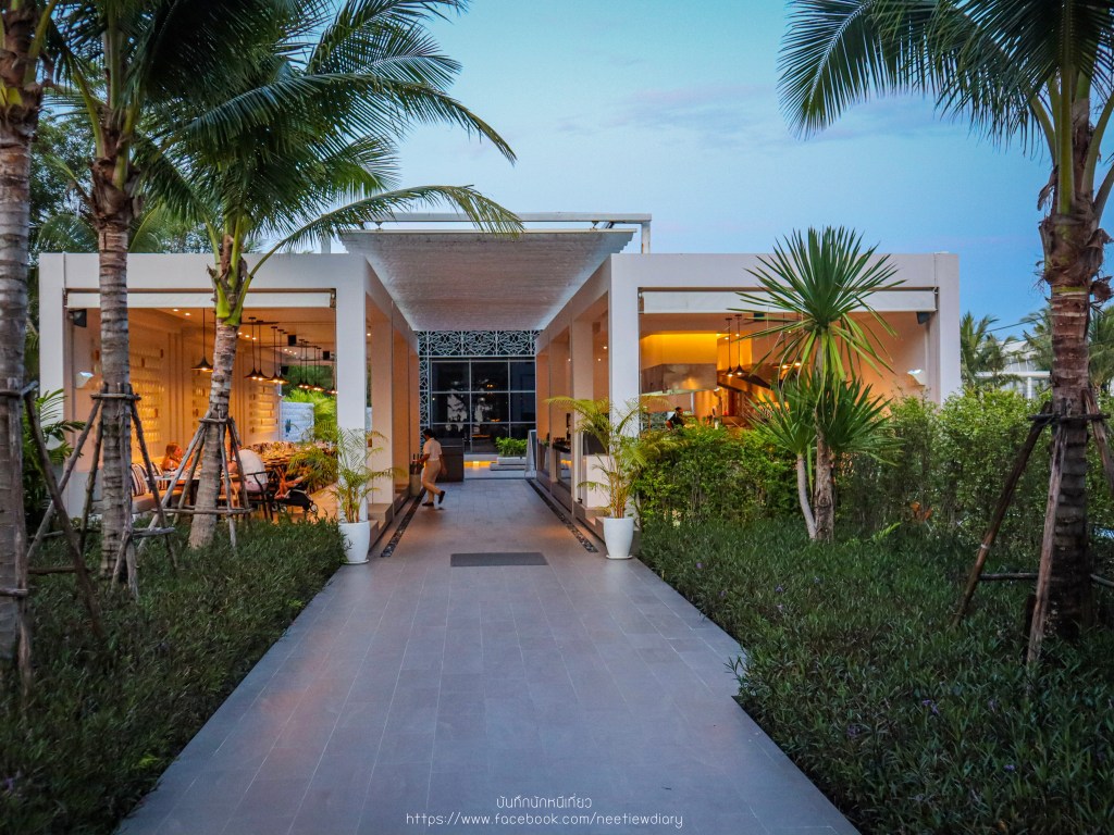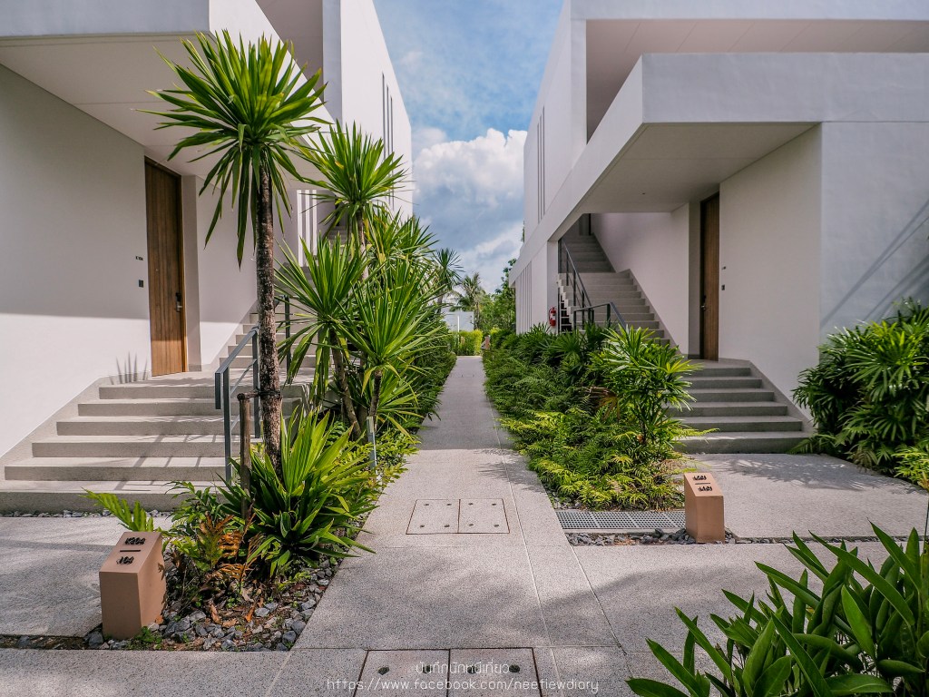 เราพาทุกคนไปชมภายในรีสอร์ทกันต่อเลยดีกว่าค่ะ บรรยากาศภายในรีสอร์ทร่มรื่นมากค่ะ ตัวอาคารจะใช้สีขาว สบายตาดีค่ะ เป็นบรรยากาศของการพักผ่อนจริงๆ