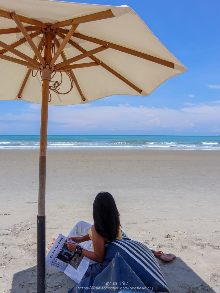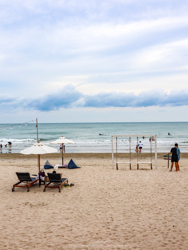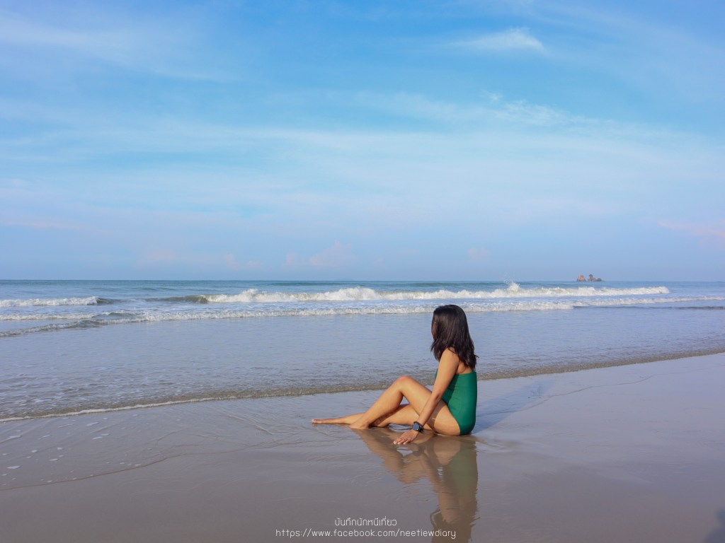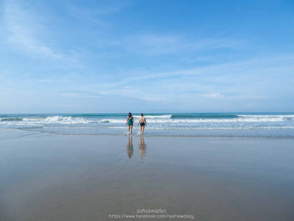 โรงแรมนี้มีหาดอยู่หน้าโรงแรมเลยค่ะ (เอ๊ะหรือเรียกว่าหลังโรงแรมนะ) เอาเป็นว่าเดินผ่านส่วนต่างๆมาจนสุดก็จะได้เจอกับหาดแหลมแม่พิมพ์ จริงๆแล้วหาดตรงนี้เป็นหาดสาธารณะนะคะ มีคนอื่นที่ไม่ได้พักที่โรงแรมมาทำกิจกรรม เล่นน้ำได้เหมือนกัน แต่เท่าที่เห็นก็ไม่ได้พลุกพล่านสักเท่าไหร่ ออกแนวเกือบสงบซะมากกว่าด้วย