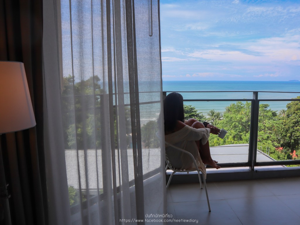 ทริปนี้เราพักห้องเริ่มต้นของที่นี่ Superior Ocean View เพราะเราอยากได้ห้องที่มีระเบียงเห็นวิวทะเลแบบเต็มๆ โดยห้องที่เราพักจะอยู่ชั้น 4 มองเห็นวิวทะเลแต่แอบติดพุ่มไม้ด้วยเหมือนกัน