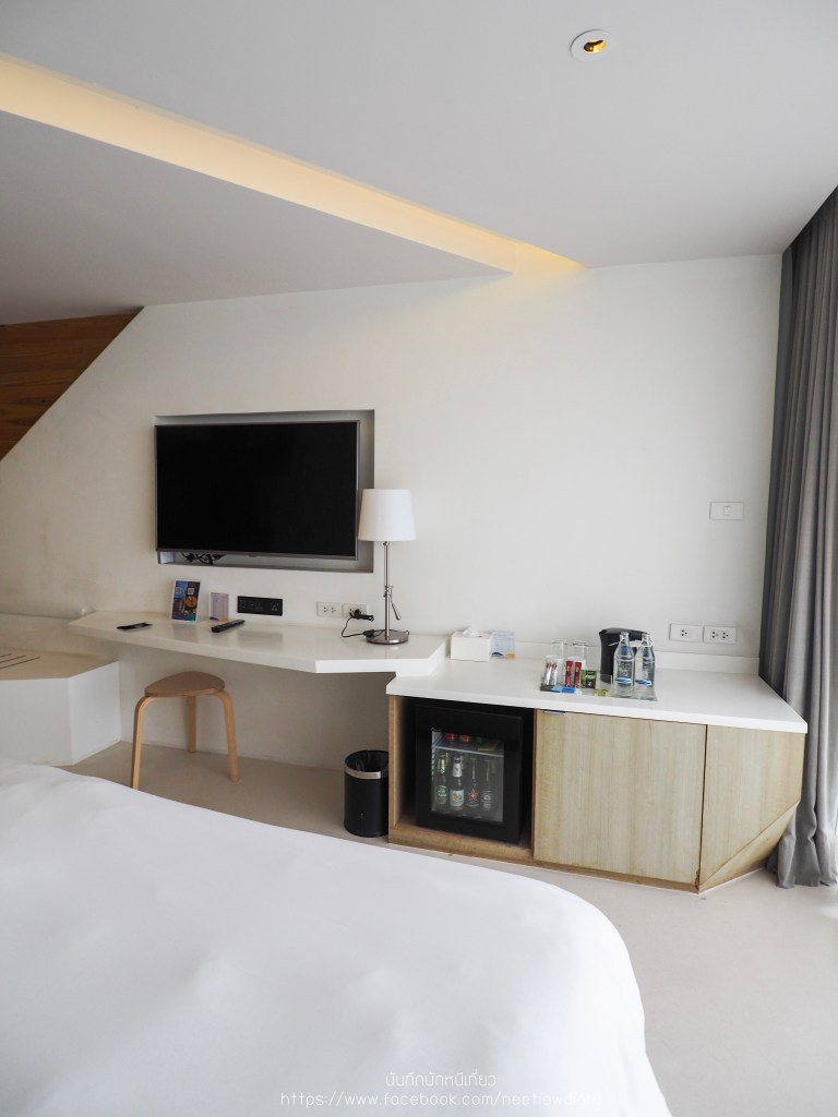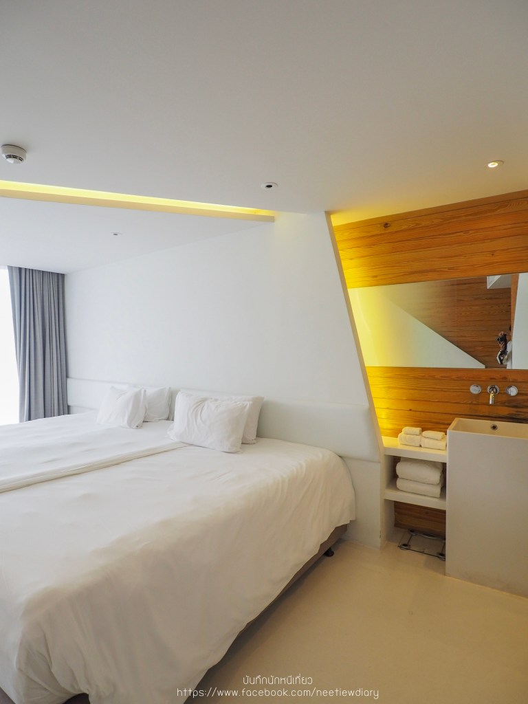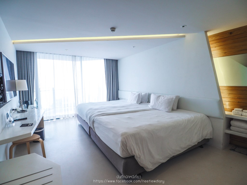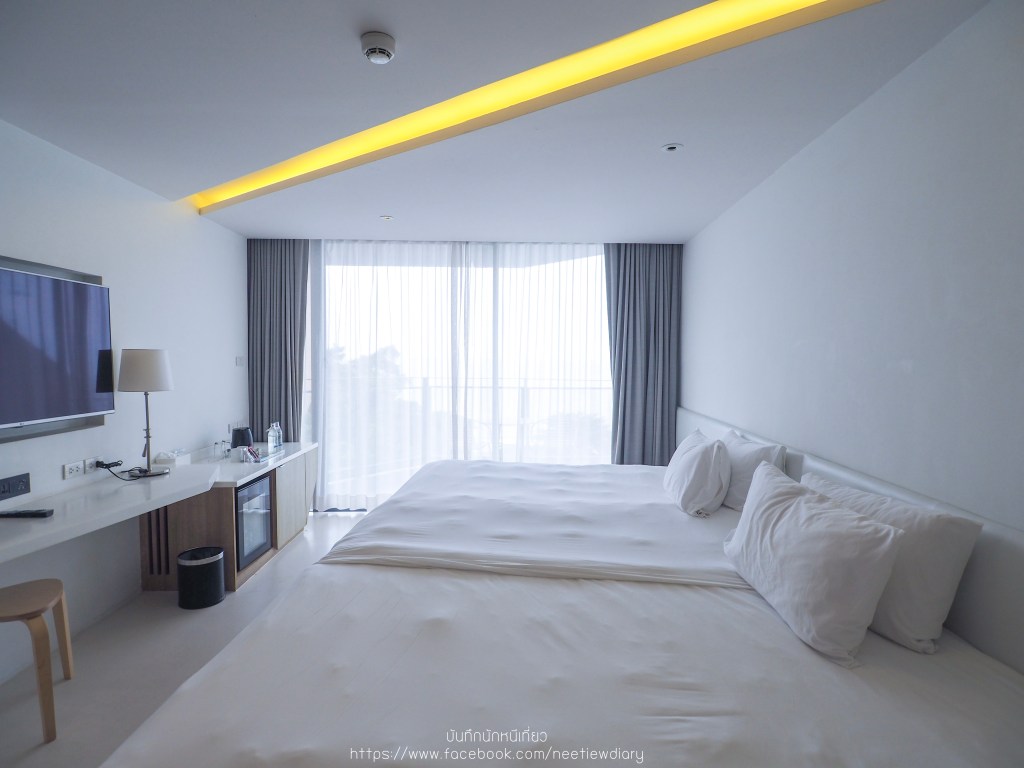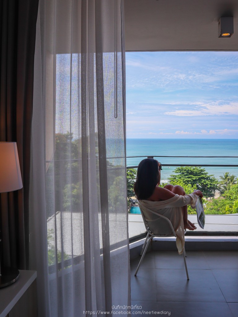 เหตุผลแรกและเหตุผลเดียวที่ทำให้เราเลือกพักที่นี่ ก็เพราะว่าเป็นโรงแรมที่ห้องเห็นวิวทะเล และส่วนของโรงแรมก็ติดหาดเลย เพราะทริปนี้เราอยากเล่นน้ำทะเล