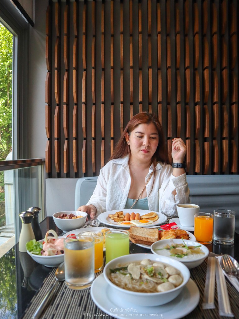 เล่นน้ำจนเหนื่อยก็หิวข้าวแล้วค่ะ อาหารเช้าที่นี่จะเสิร์ฟเป็นรอบๆ โดยแต่ละรอบจะจำกัดจำนวนคน ซึ่งทางโรงแรมจะให้เราเลือกรอบอาหารเช้าตั้งแต่ตอนเช็คอินเลยค่ะ