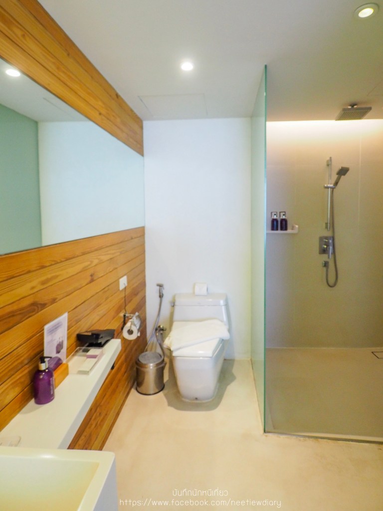 ส่วนของห้องน้ำที่มีความเชื่อมจากโซนห้องนอนอย่างเนียนๆ ห้องน้ำมีการแยกโซนแห้งและเปียกอย่างชัดเจน และภายในห้องมีพร้อมกับความสะดวกแบบครบครันเลยค่ะ