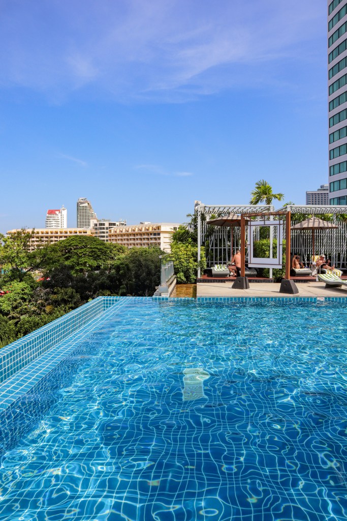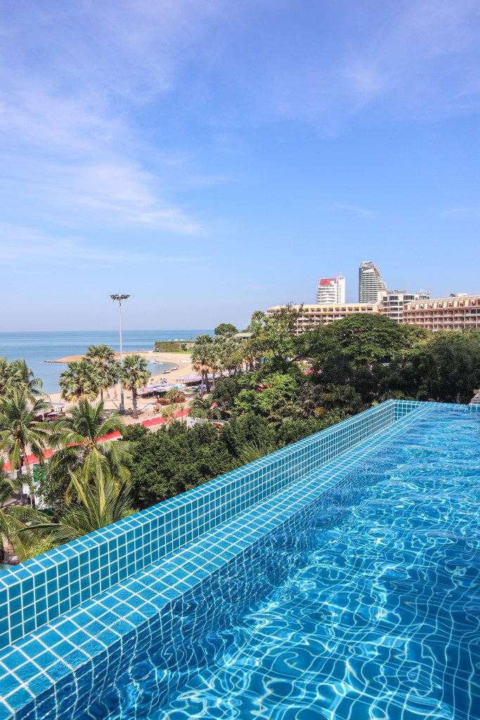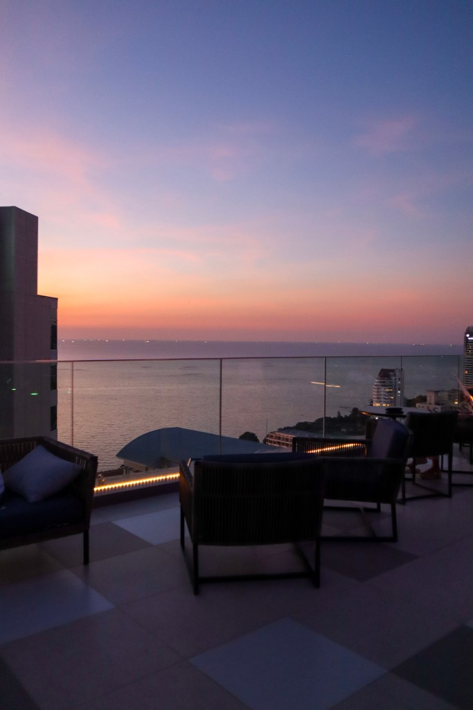 อย่างที่บอกว่าวันนี้อากาศดีมากค่ะ เราเลยขอไปนั่งจิบเครื่องดื่มชิลๆที่บาร์บนดาดฟ้ากันหน่อย ใครมาพัทยา อยากหาที่พัก หรือบาร์นั่งชิลที่มองเห็นพระอาทิตย์ตกชัดมาก หรือดูพลุ (ช่วงที่มีเทศกาล) เราแนะนำที่นี่เลย วิวดี คอนเฟิร์ม
