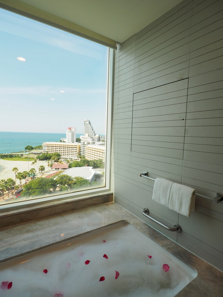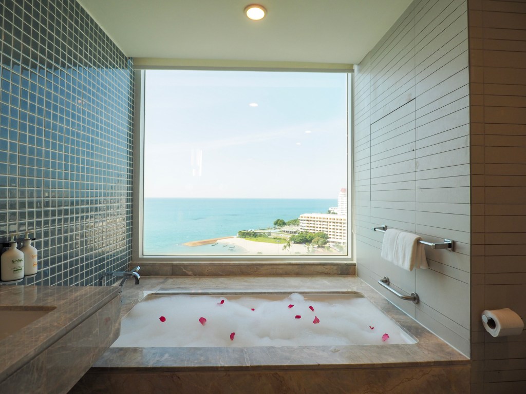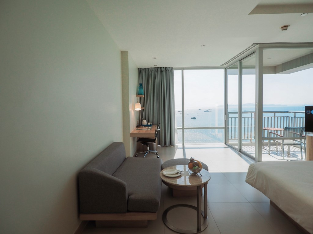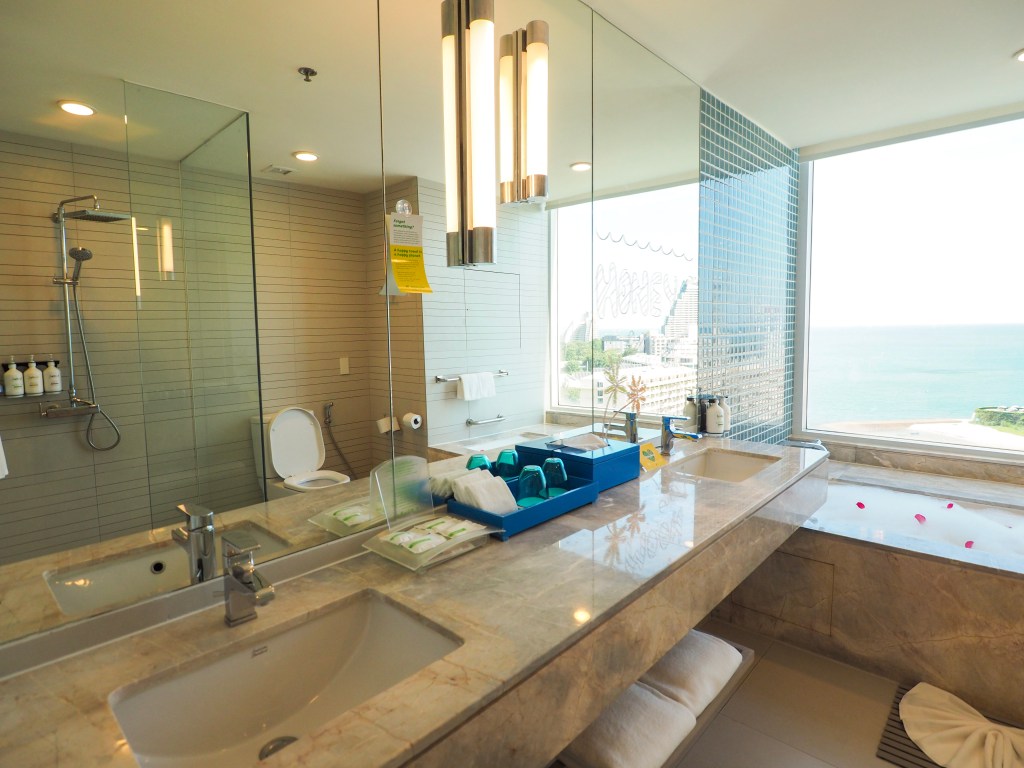 ทริปนี้เราพักห้อง 1 King Premium Pattaya Beachview เป็นห้องที่สวยมากกก วิวระเบียงห้องเราสามารถดูพระอาทิตย์ได้เลยนะ และที่สำคัญห้องนี้มีวิวห้องน้ำที่ชวนกรี๊ดมาก