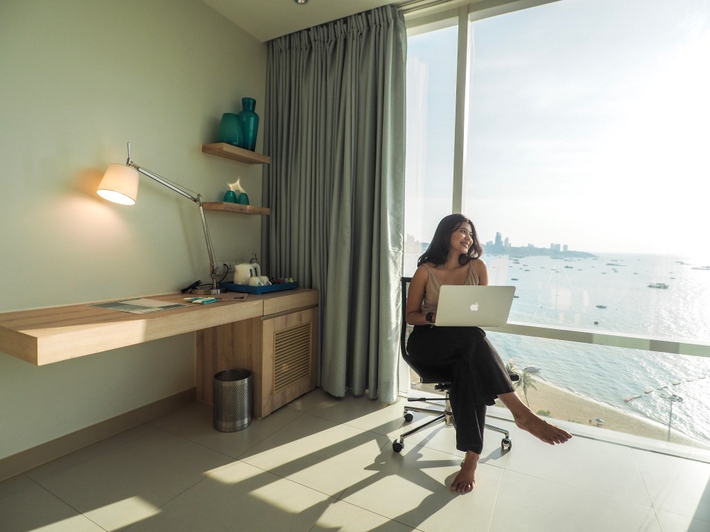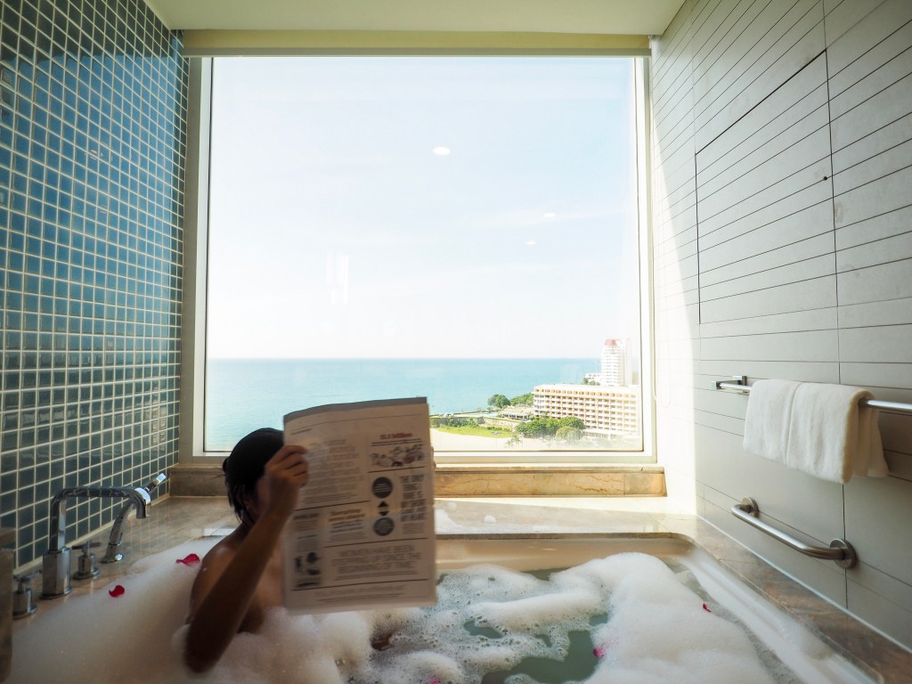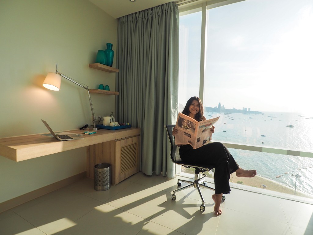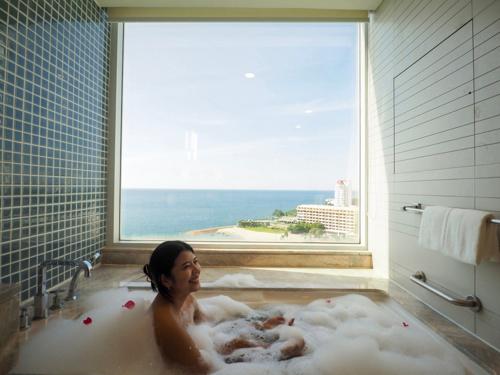 ทริปนี้เราพักห้อง 1 King Premium Pattaya Beachview เป็นห้องที่สวยมากกก วิวระเบียงห้องเราสามารถดูพระอาทิตย์ได้เลยนะ และที่สำคัญห้องนี้มีวิวห้องน้ำที่ชวนกรี๊ดมาก