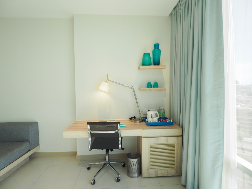 มาดูภายในห้องที่เราพักกันค่ะ ห้องนี้มีขนาด 45 ตร.ม.เข้ามาในห้องจะเจอโซนห้องนอน และ ห้องน้ำก่อนเลยค่ะ