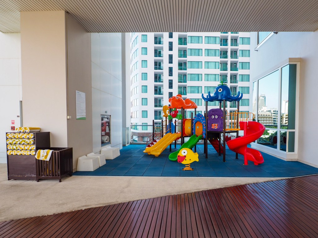 จากที่เล่าว่าโรงแรมเหมาะกับทุกคนในครอบครัว แน่นอนค่ะว่าไม่ใช่สระผู้ใหญ่ที่จะชิล สระเด็กและคิดส์คลับก็ใหญ่มากเลยค่ะ