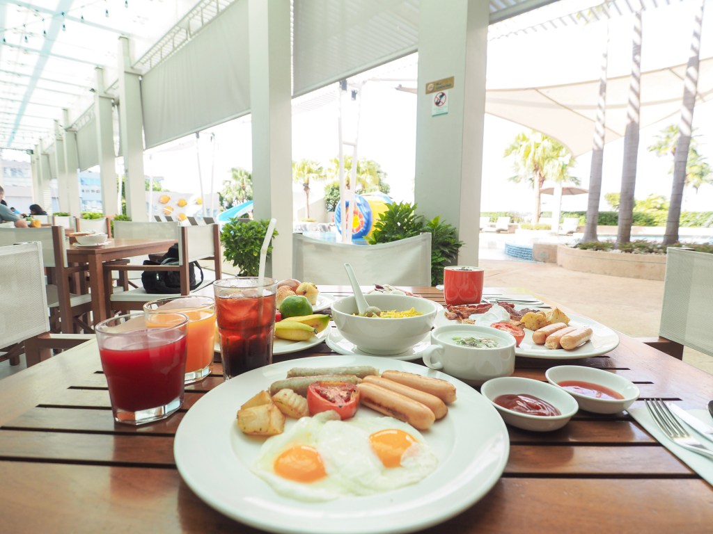 เราหลับไปกันแบบอิ่มๆ ตื่นเช้านี้ลงมาทานอาหารเช้ากันค่ะ อาหารเช้าของที่นี่จะเป็นแบบบุฟเฟ่ต์ มีอาหารให้เราเลือกทานเยอะเลยค่ะ และอร่อยมากด้วย
