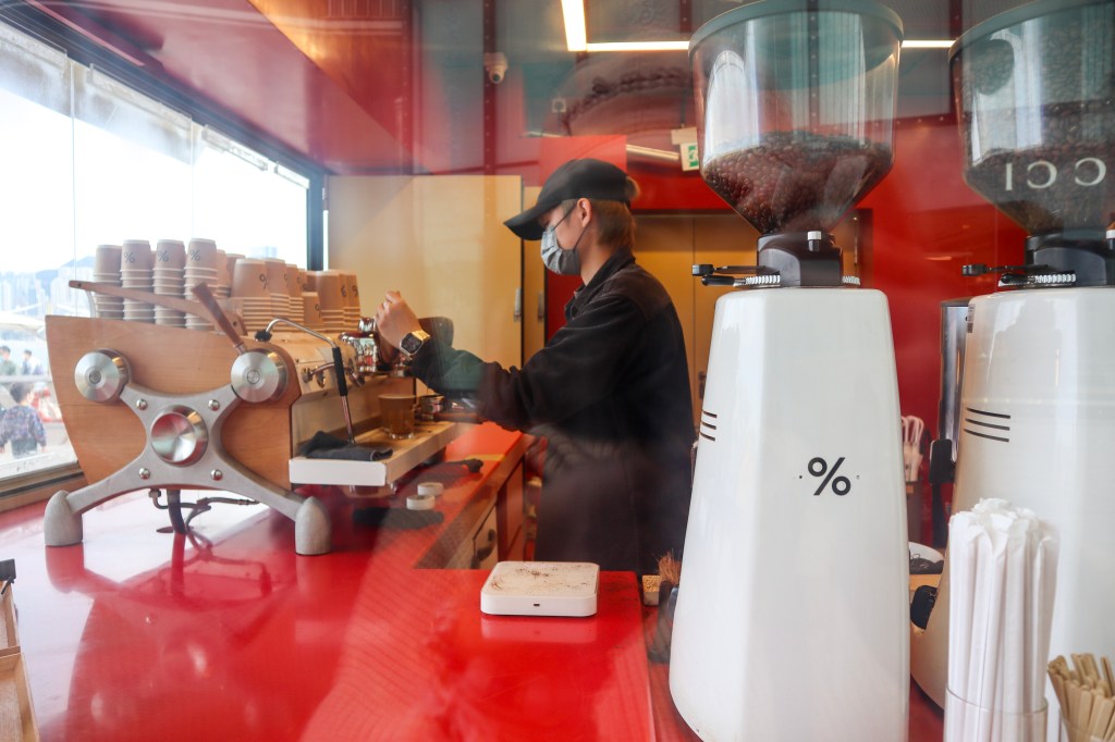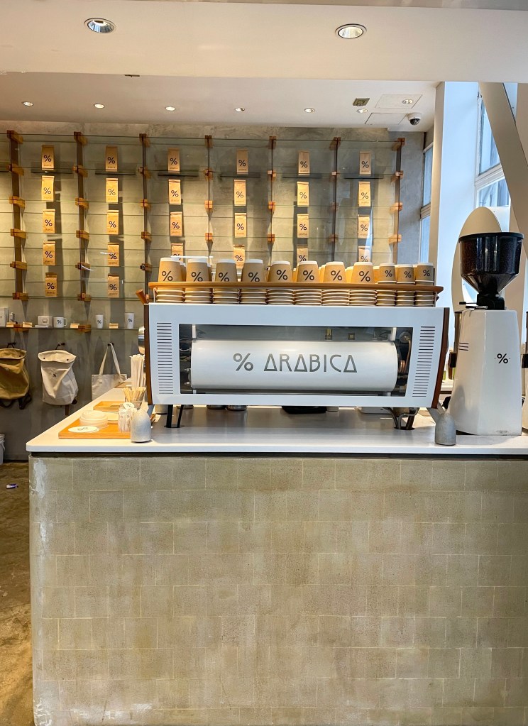 % Arabica Hong Kong Star Ferry ตั้งอยู่บริเวณท่าเรือ Star Ferry ย่าน จิมซาจุ่ย (Tsim Sha Tsui) อย่างที่เรารู้จักกันว่า % Arabica เป็นแบรนด์กาแฟที่รสชาติมาตรฐาน ทุกสาขาอร่อยเหมือนกัน แต่ความแตกต่างที่ทำให้แฟนคลับแบบเราตามไปเช็คอินทุกสาขานั่นก็คือ ตัวร้านของแต่ละสาขาตกแต่งออกมาได้สวยมาก มีความน้อยแต่มากตามสไตล์ของแบรนด์