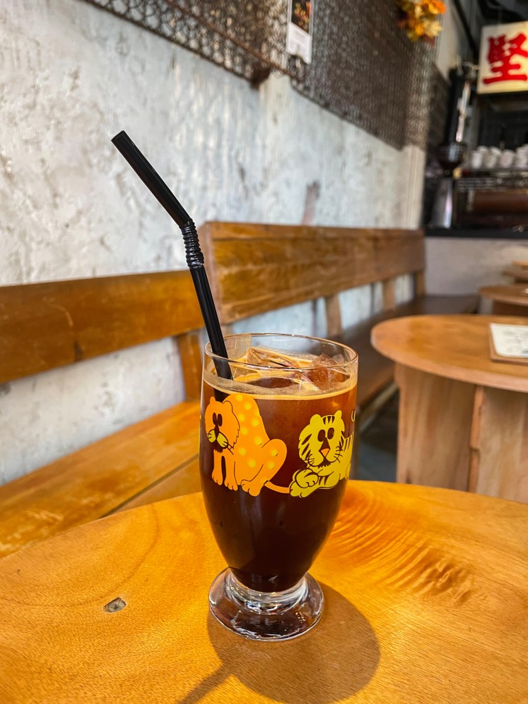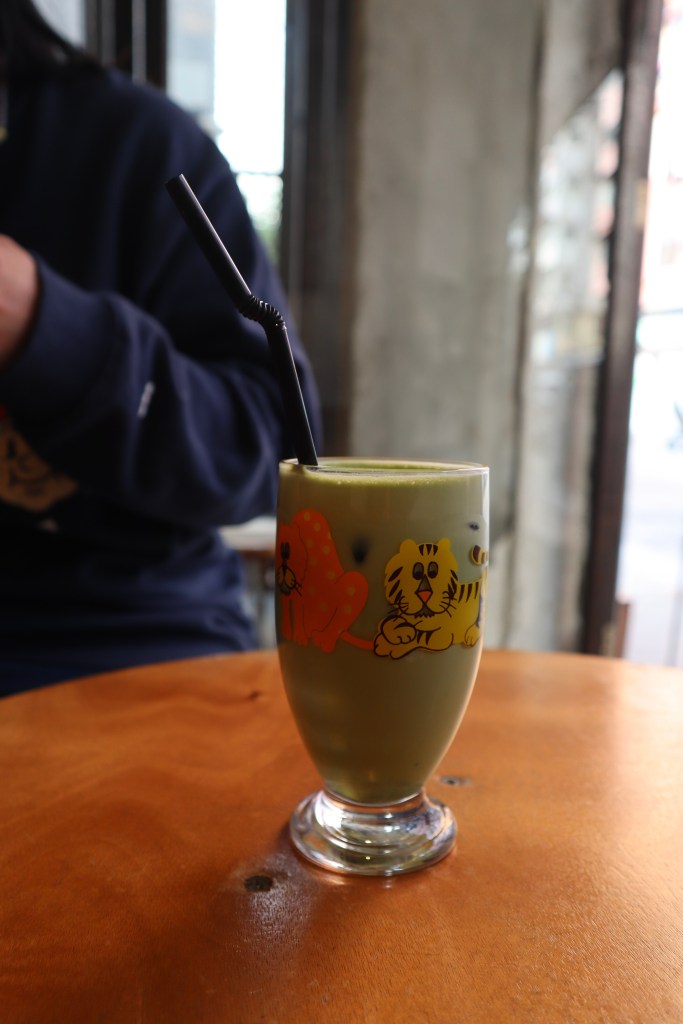 เราสั่งกาแฟ และ ชาเขียวใส่แก้วทานที่ร้าน เครื่องดื่มของเราก็จะเสิร์ฟมาในแก้วที่มองไกลๆก็ยังรู้ว่ามีความจีนผสมอยู่ในนั้น รสชาติเครื่องดื่มอร่อยมากทีเดียวค่ะ