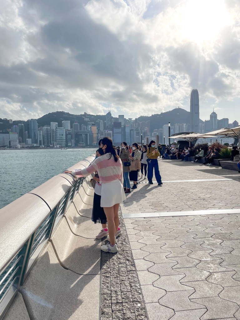 อ่าววิคตอเรีย จัดเป็นวิวอ่าวที่สวยติดอันดับโลก ทำให้ที่นี่เป็นสถานที่ที่นักท่องเที่ยวที่มาฮ่องกง ต้องมา วันนี้ไหนๆเราก็มาโซนนี้แล้ว เลยเดินมาถ่ายรูปเล่นต่อ ช่วงเย็นมุมนี้สวยเลยนะคะ น่าแปลกเพราะว่าตรงนี้มีคนเยอะ แต่บรรยายกลับเหงาจับใจซะงั้น