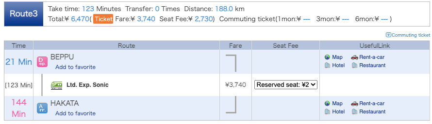 การเดินทางครั้งนี้เราสามารถใช้ JR Rail Pass, JR Kyushu, JR Northern Kyushu Pass และ ขากลับจากเบปปุเราก็แนะนำให้กลับด้วยรถไฟขบวนเดิมนะคะ เพราะเราจะสามารถนั่งได้ยาวๆ ไม่ต้องต่อรถจนถึงสถานี Hakata เลยค่ะ
