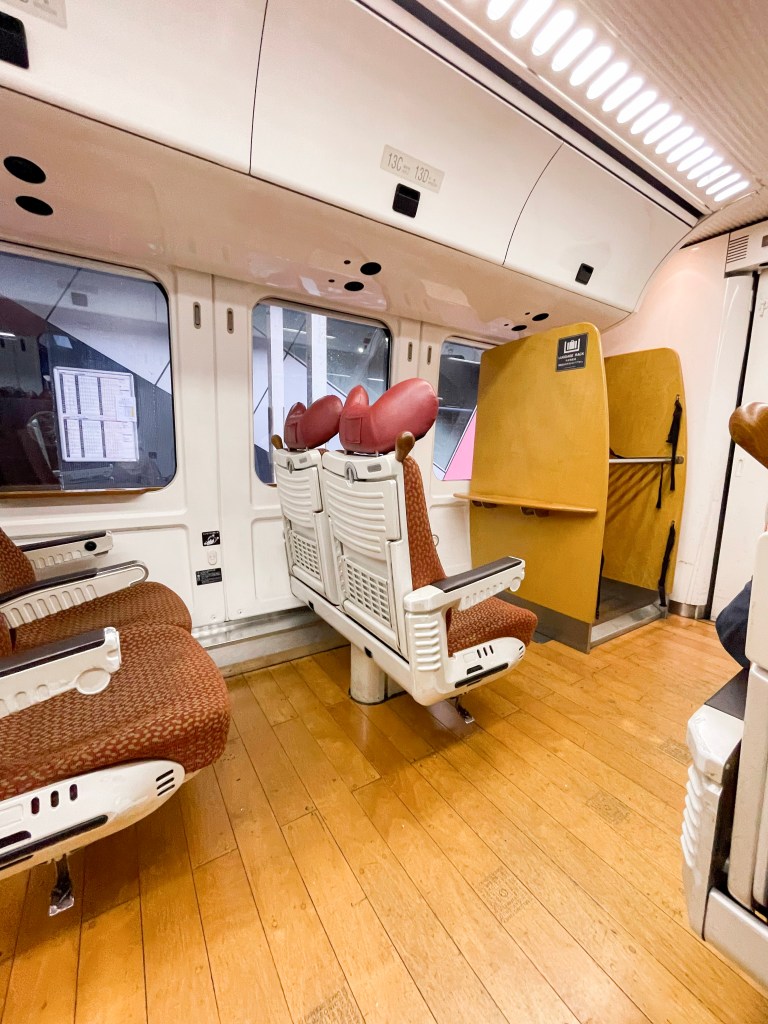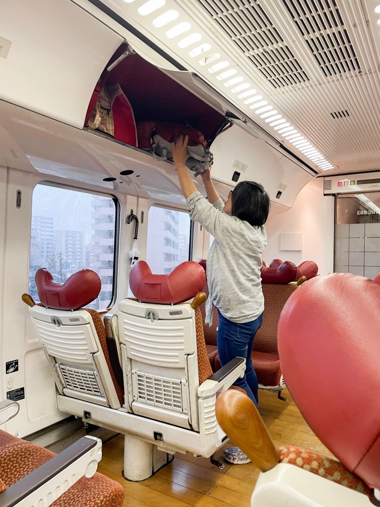 มาดูภายในรถไฟกันค่ะ เราจองที่นั่งมาได้โบกี้ที่ 2 เมื่อเข้ามาภายในแล้วเราจะได้เจอห้องโดยสารที่พื้นปูด้วยไม้ปาเก้ ตัวห้องโดยสารสีขาวสว่างรับกับเก้าอี้เบาะและผนักพิงโทนสีแดง ส่งให้ภายในห้องโดยสารสว่างแบบสบายตามากค่ะ ตัวเบาะที่นั่ง นั่งสบาย โต๊ะหน้าที่นั่งสามารถเปิดออกมาได้ หรือใครมีกระเป๋าใบใหญ่ก็จะมีโซนเก็บกระเป๋าหรือจะเก็บของไว้ที่ช่องเก็บของด้านบนของที่นั่งเราก็ได้