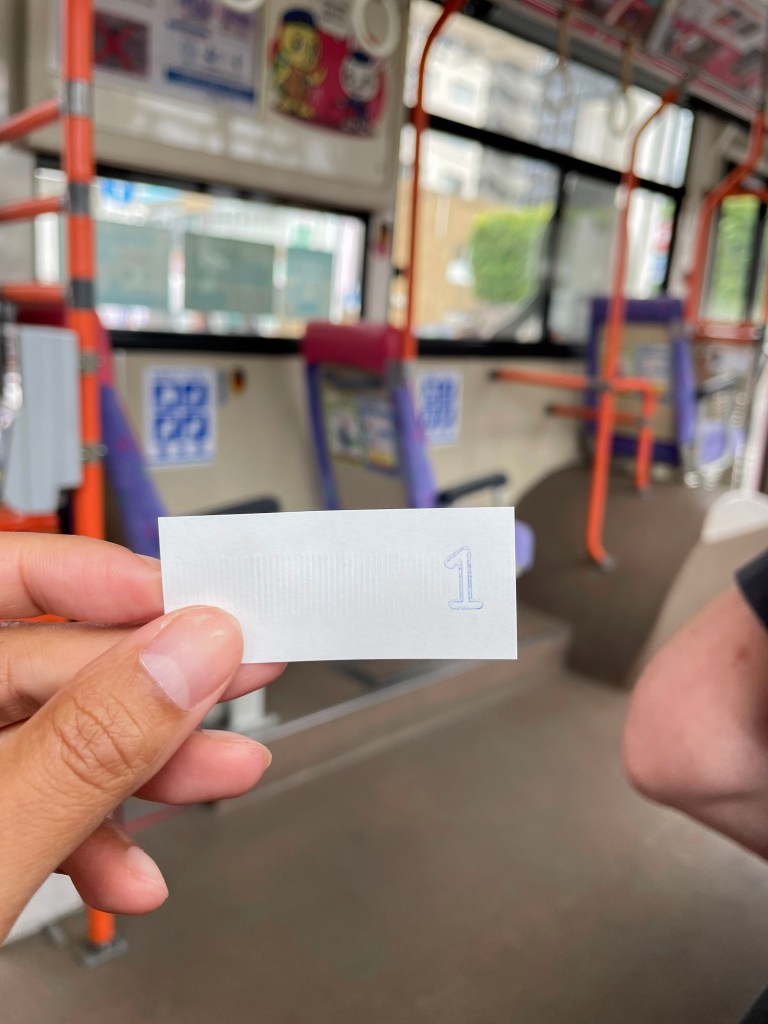 - ส่วนใครที่ไม่มีบัตร IC Card ก็ให้หยิบตั๋วเล็กๆ จากกล่องที่ประตูหลัง จากนั้นให้ดูว่าเราได้หมายเลขอะไร แล้วเราสามารถเช็คค่าเดินทางของเราได้จากจอหน้าด้านใกล้คนขับว่า หมายเลขเรานั้น ค่าเดินทางกี่บาท จากนั้นเมื่อจะลงให้เอาเงินสดใส่ลงในกล้องที่อยู่ใกล้คนขับ