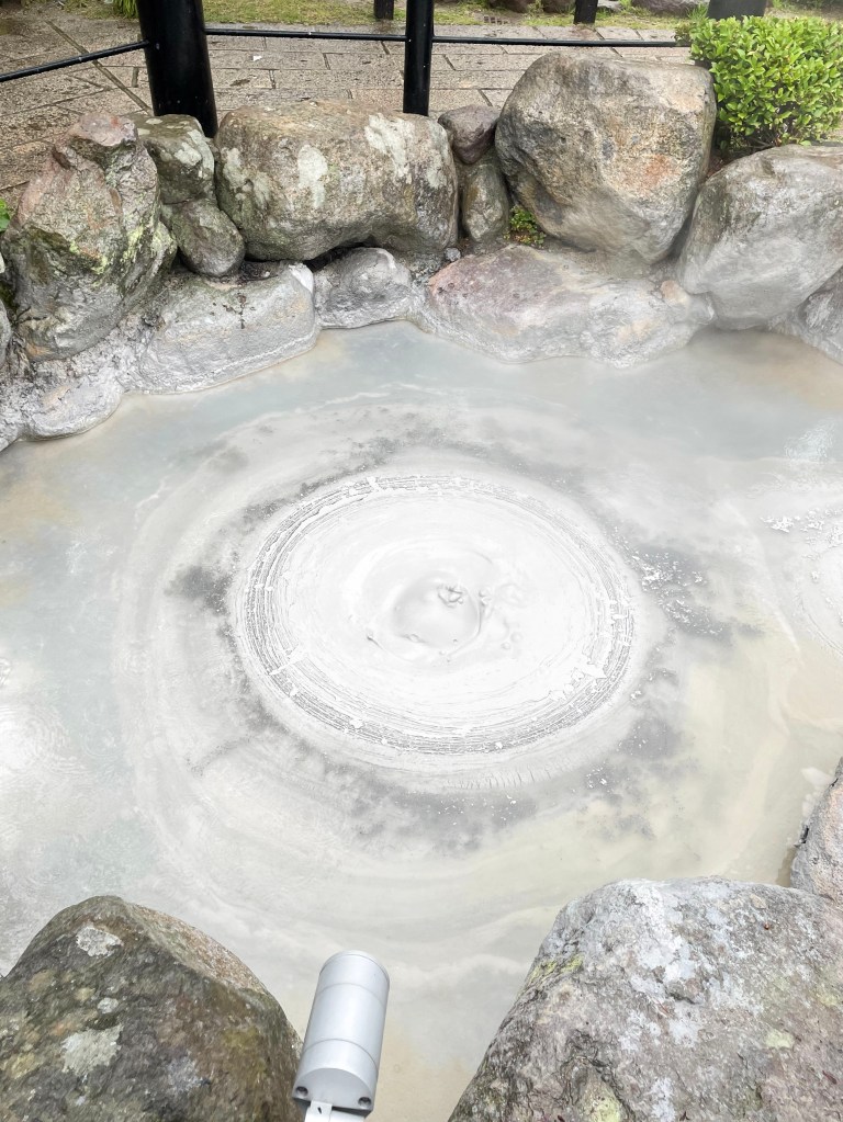 บ่อที่ 2 คือ Oniishi Bozu Jigoku (โอนิอิชิ โบสุ จิโกกุ ) เป็นบ่อที่อยู่ใกล้บ่อแรกมาก บ่อน้ำพุร้อนบ่อนี้เป็นบ่อโคลนเดือดอุณหภูมิ 99 องศา สำหรับบ่อนี้สนุกดีนะ เพราะเราจะได้เห้นโคลนเดือดๆ ที่กำลังปะทุขึ้นมา ดูแปลกตาดีค่ะ